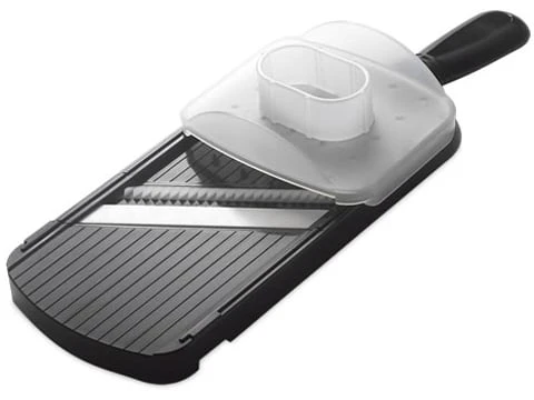 Don’t worry – Kyocera’s Ceramic Julienne Slicer will help you make short work of fruit and veggies! Just use the hand guard to firmly grasp whatever you need julienned, and run it gently back and forth over the Kyocera’s double edged blade. It does all the work for you, leaving you with a perfect salad in moments!