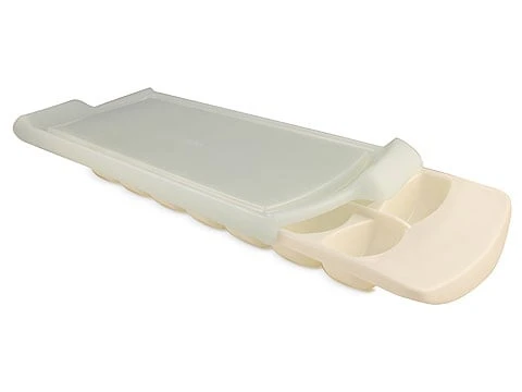 Unique, patented cover design allows release of as many ice cubes as you want.