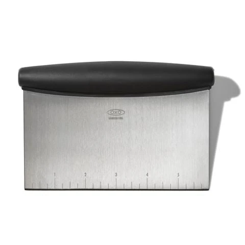 Our Stainless Steel Multi-Purpose Scraper & Chopper is a great tool for portioning and scraping dough, as well as lifting cookies from a cookie sheet, cutting brownies and chopping firm vegetables like celery. Convenient measurement markings allow you to evenly section dough for baking.