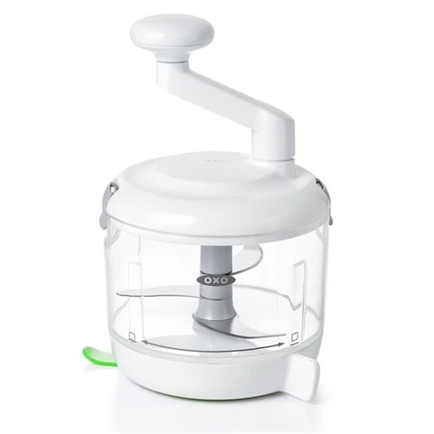 Whip up anything from pesto to guacamole with the OXO One Stop Chop Manual Food Processor. The sharp blades cut through fruits, vegetables, nuts, and more. Whether you’re chopping tomatoes into larger chunks for salsa or puréeing chickpeas for hummus, the texture is up to you and how many times you turn the comfortable handle. Easy to use, easy to clean, easy to impress your friends with your homemade creation.