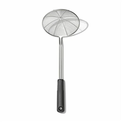 Scoop & Strain Skimmer is the perfect tool to remove pasta, vegetables and pan or deep-friend foods while leaving all liquid behind. Featuring a wire coil design that ensures even the most delicate of foods won’t be damaged, the Skimmer’s deep, open basket is constructed for safe and efficient straining. An upgraded longer, angled handle and soft, non-slip grip enhance the Skimmer’s safety by keeping hands far away from hot oil or water.
