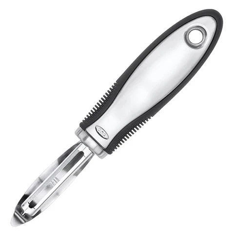 The sharp stainless steel Swivel Peeler blade glides through tough fruit and vegetable skins with ease.