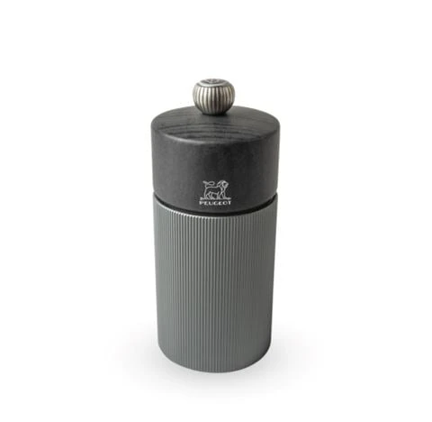 The striations running across the body of Peugeot’s Carbone Line Salt Mill play with the light and resonate with the graphite finish and its metallic reflections, bringing a sublime touch to the top of the mill.