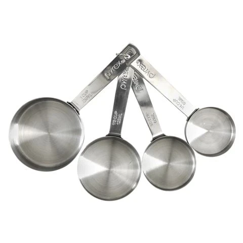 - Includes four measuring cups ranging from ¼ cup to one full cup.